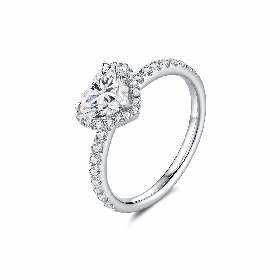 Romantic and radiant, this heart-cut lab-created diamond ring is designed to celebrate love in its purest form. The heart-shaped center diamond is beautifully framed by a sparkling halo, enhancing its brilliance and emphasizing its distinctive silhouette. A pavé-set band adds refined sparkle along the shoulders, creating a seamless flow of light from every angle.